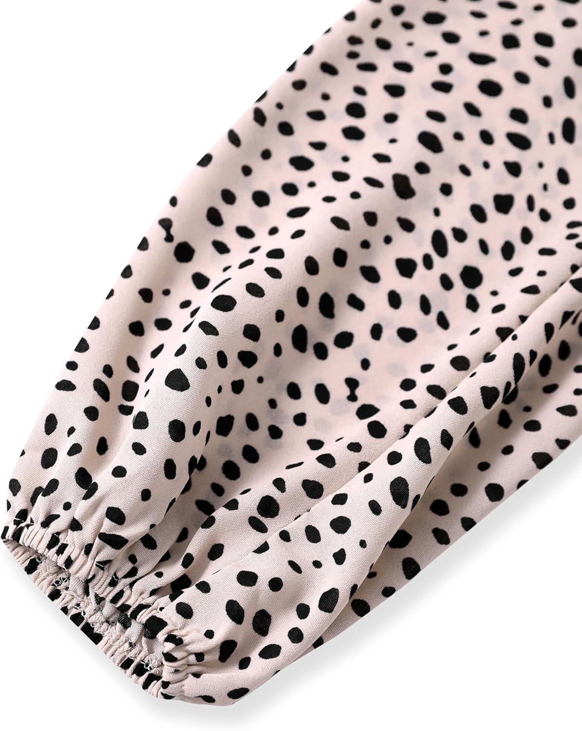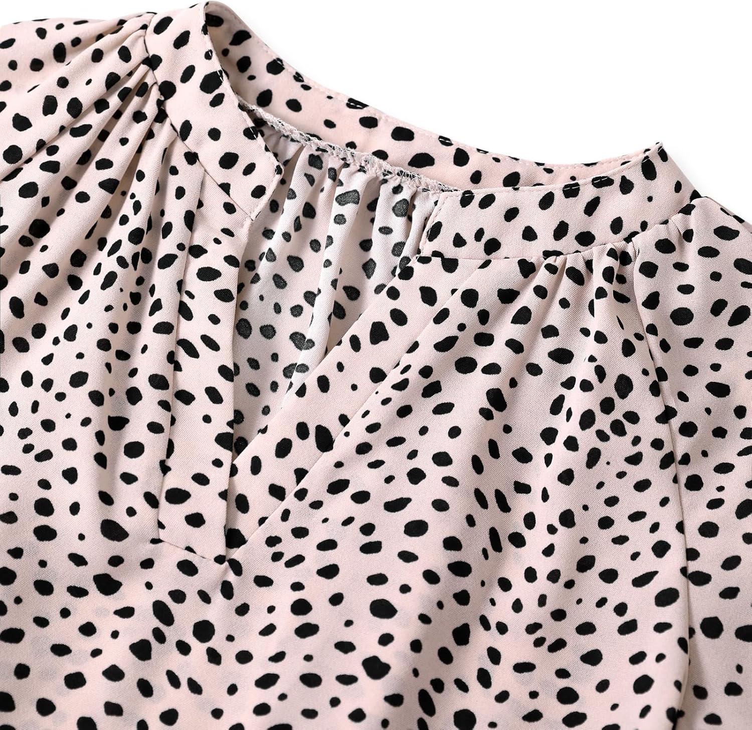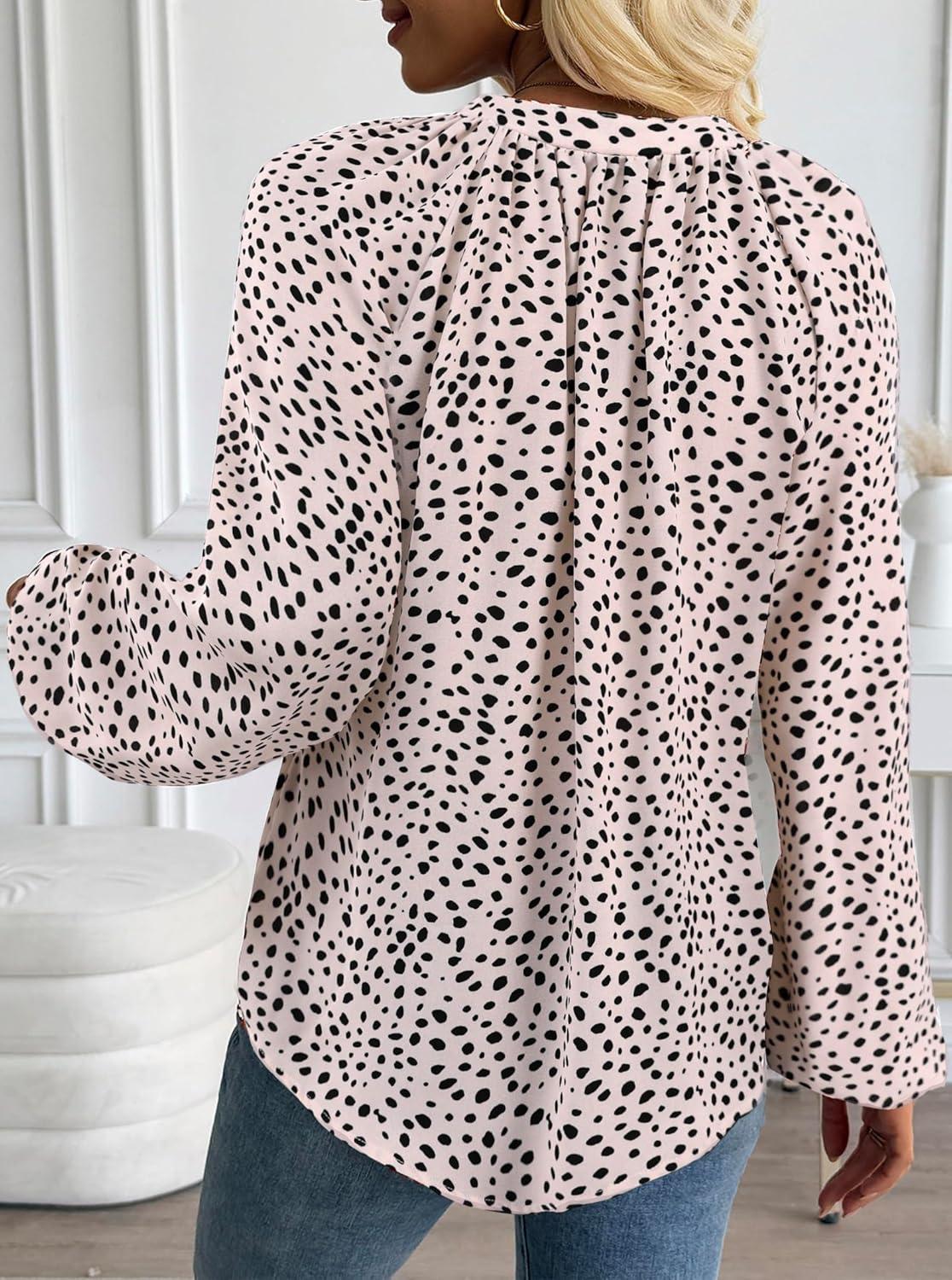 Avanova Women Boho Floral Blouses V Neck Top Lantern Long Sleeve Shirt(Leopard Beige)