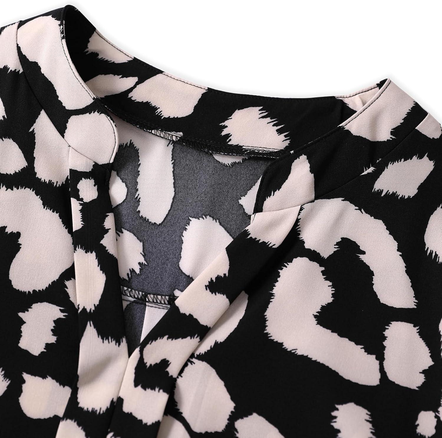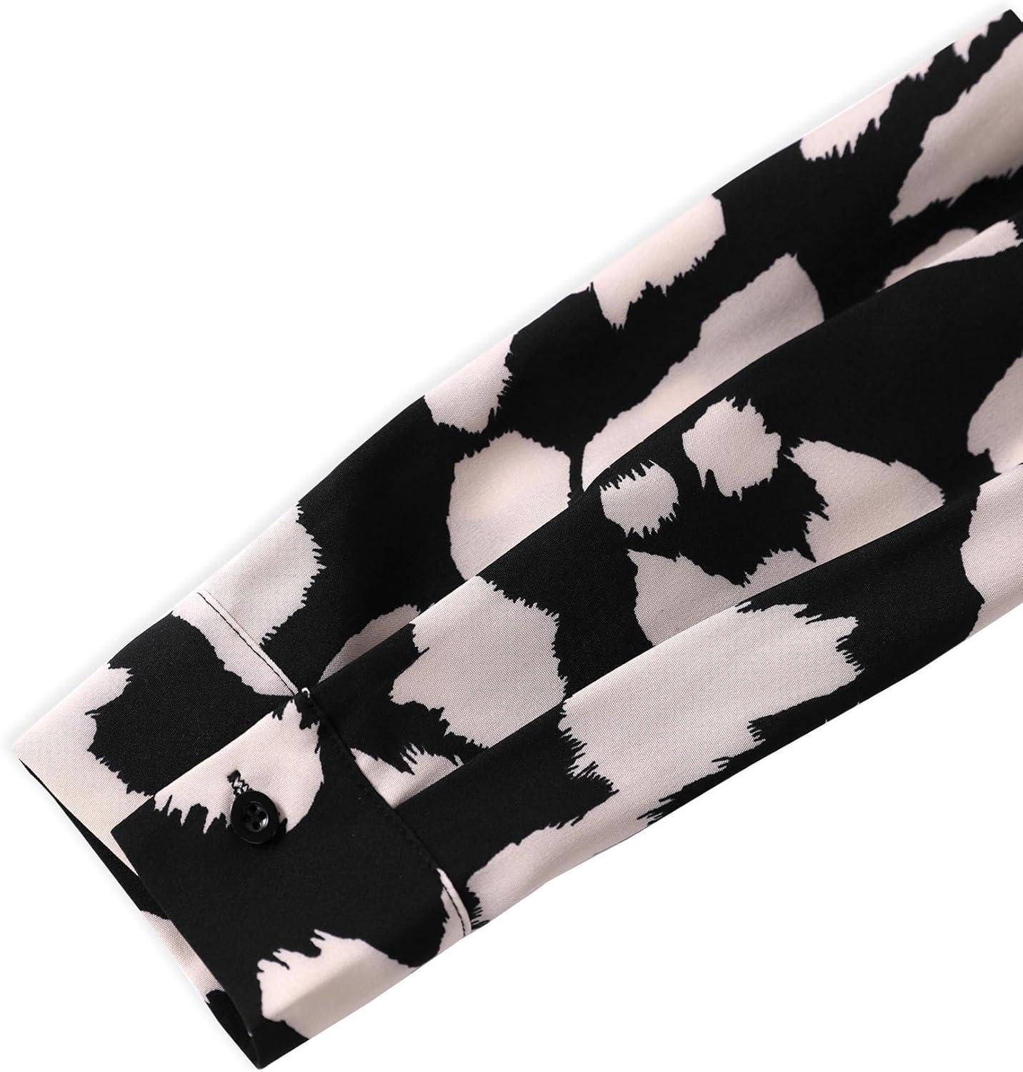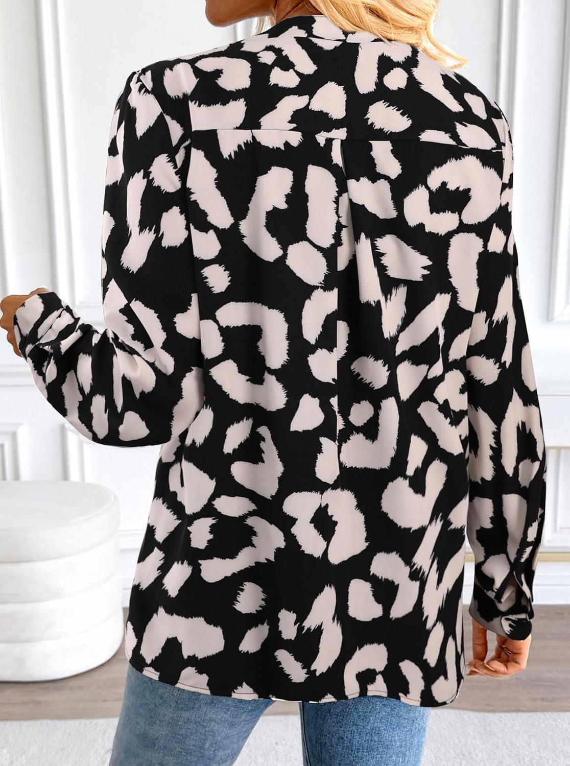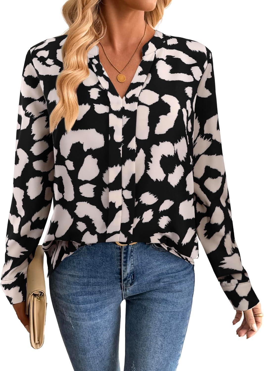 Avanova Women Boho Printed V Neck Tops Long Sleeve Shirts Work Blouses(Black Beige)