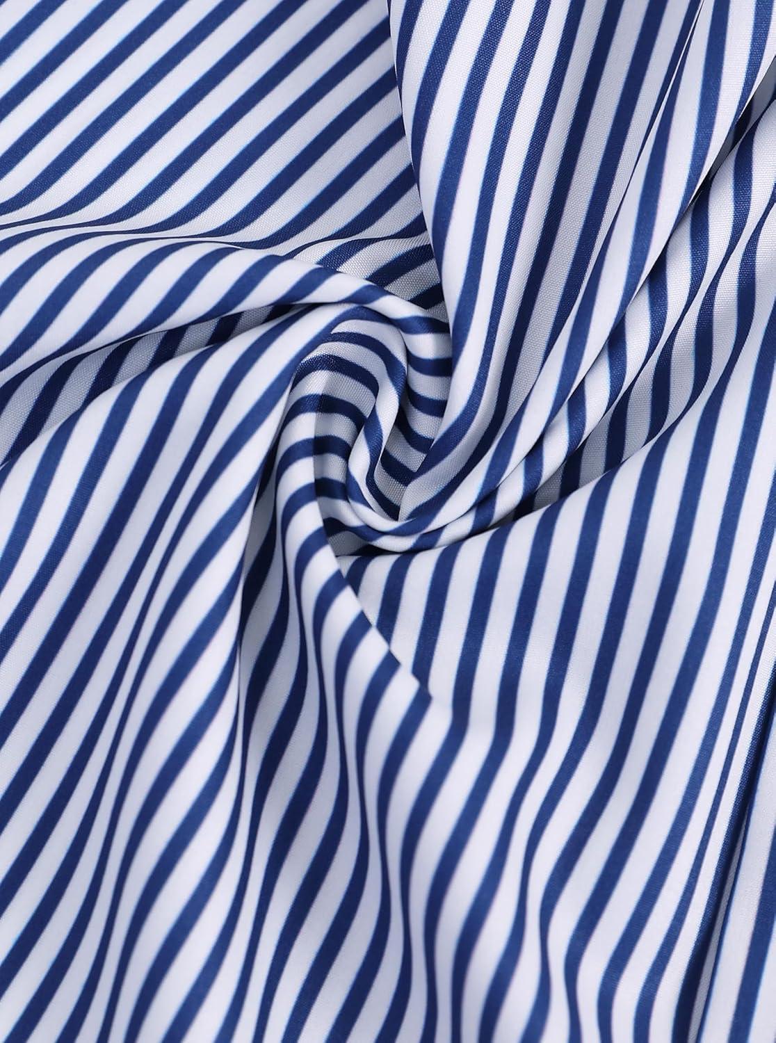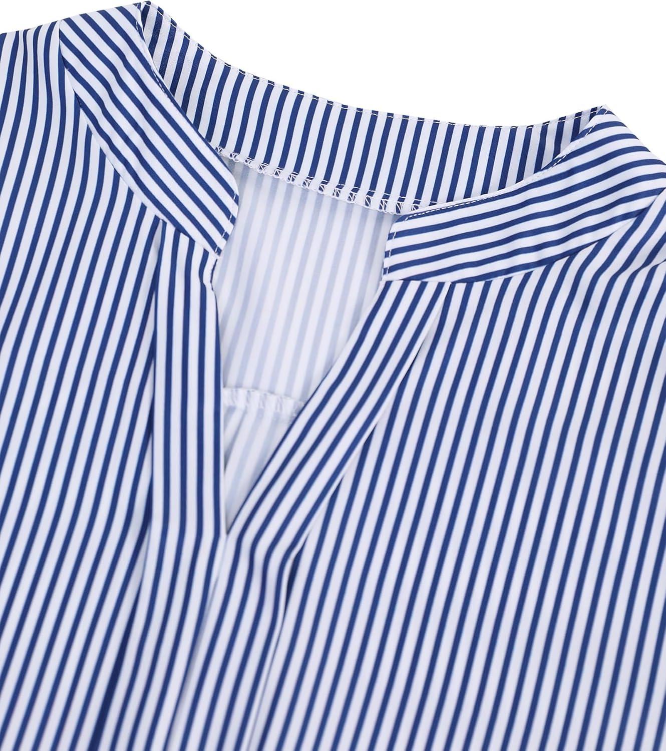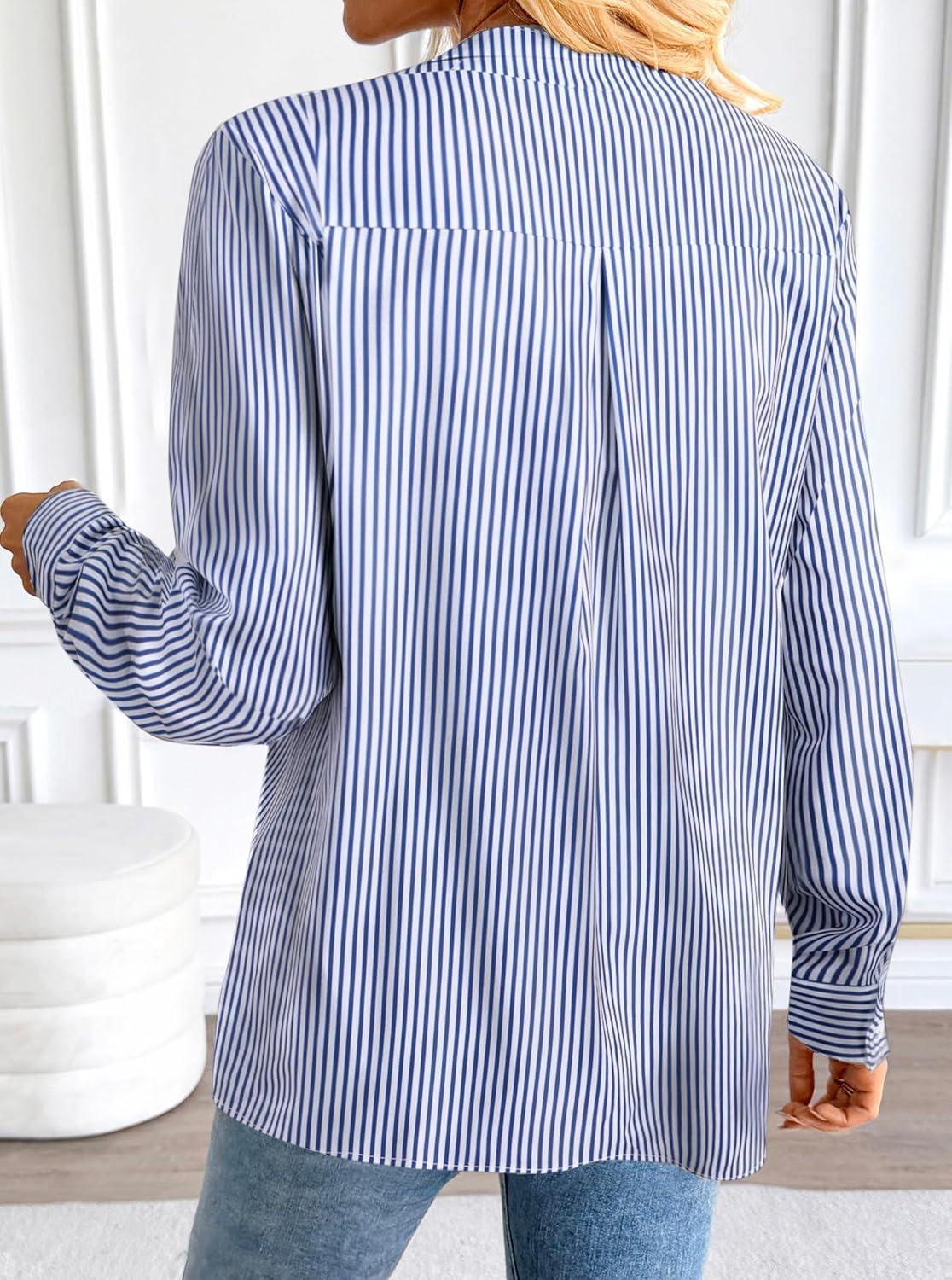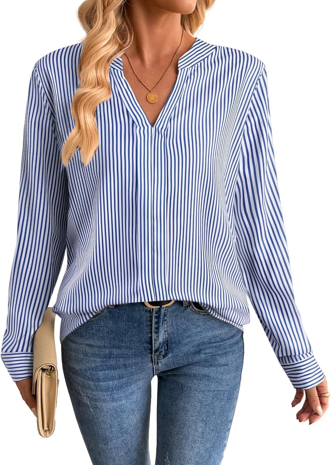 Avanova Women Boho Printed V Neck Tops Long Sleeve Shirts Work Blouses(Blue Striped)