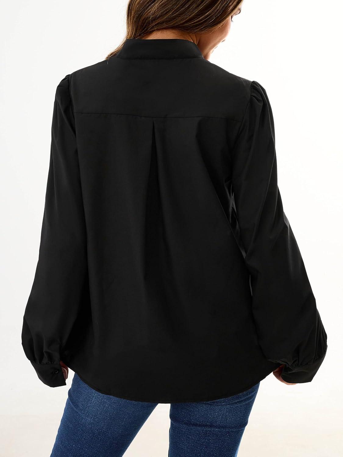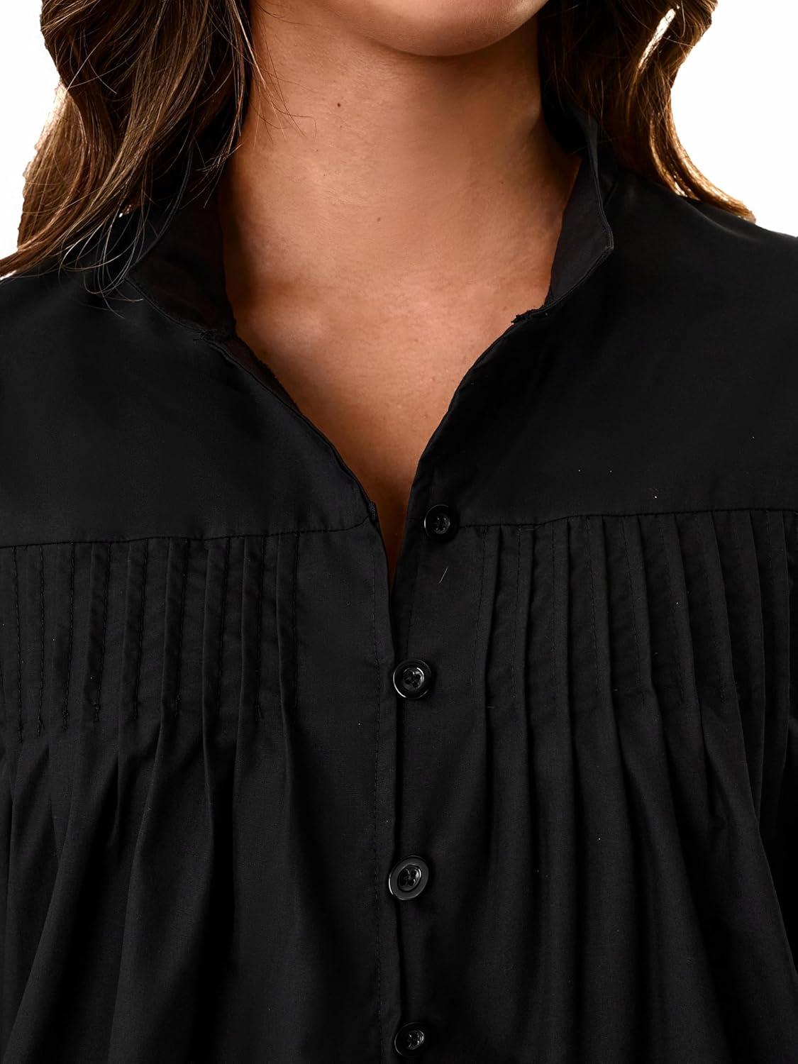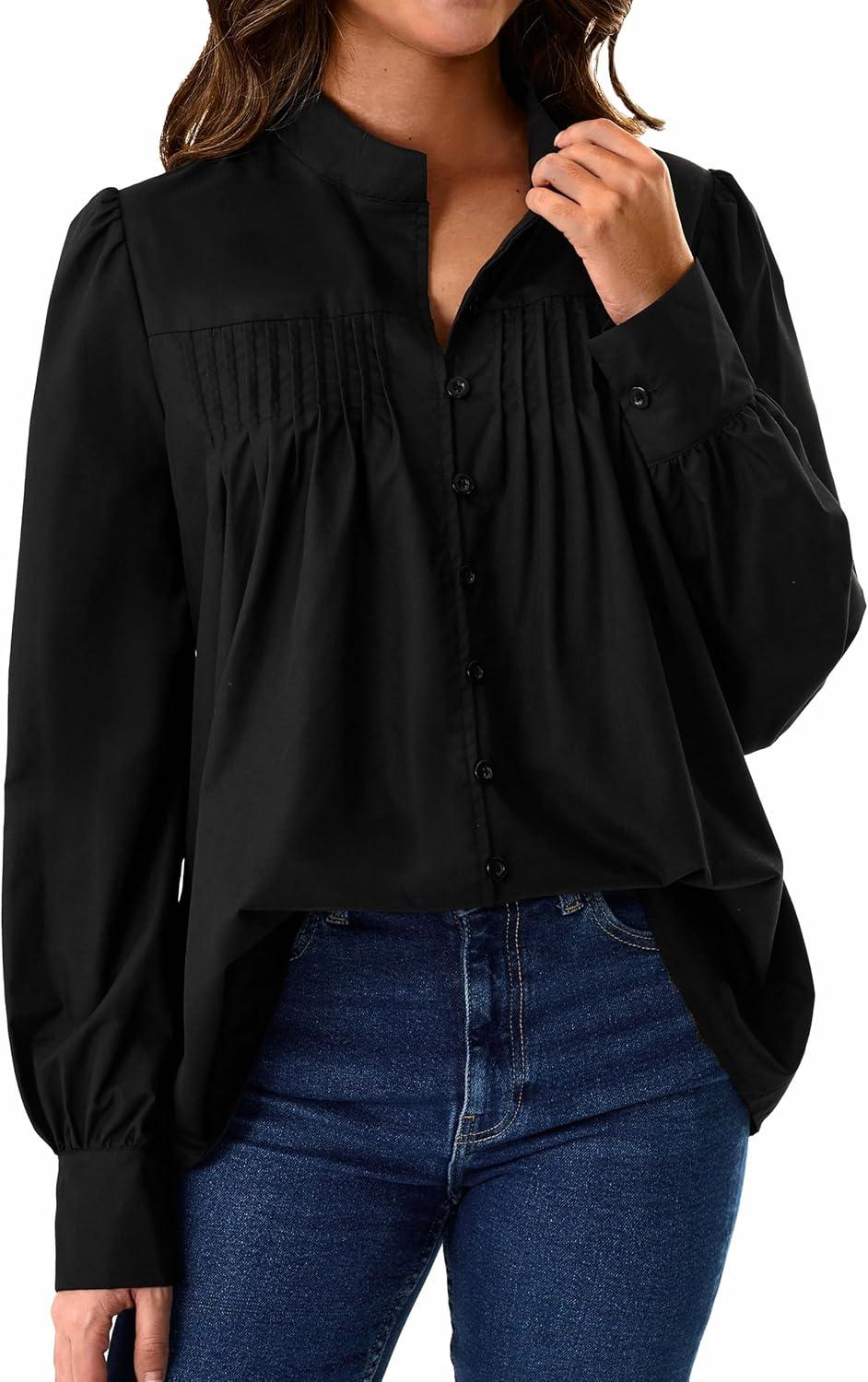 Avanova Women Button Down Up Shirts Long Sleeve Blouses Pleated Mock Neck Tops Black Small