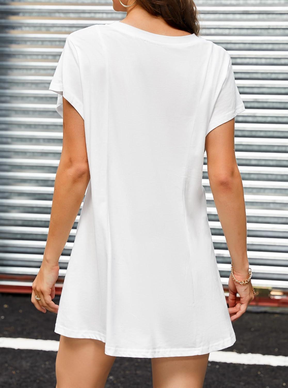 Avanova Women Cap Short Sleeve Loose Fit Tunic Tops Oversized Summer Long T Shirts(White)