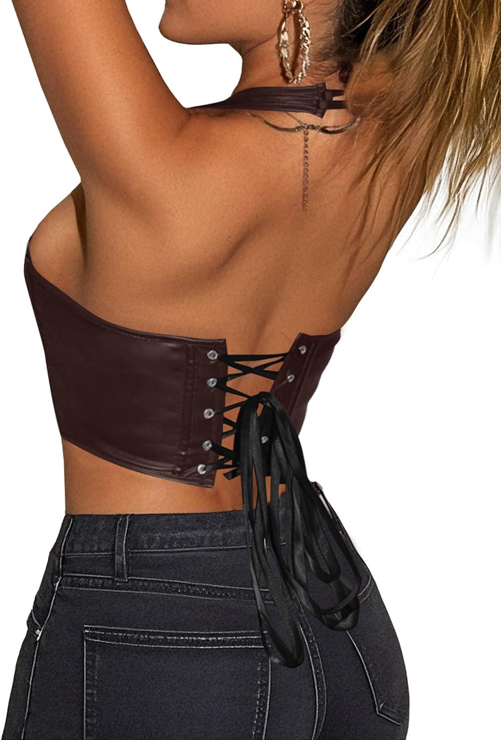 Women's Y2K Leather Halter Top Backless Corset Bustier Top Lace Up Sexy Going Out Crop Tank Halter Neck Party Club