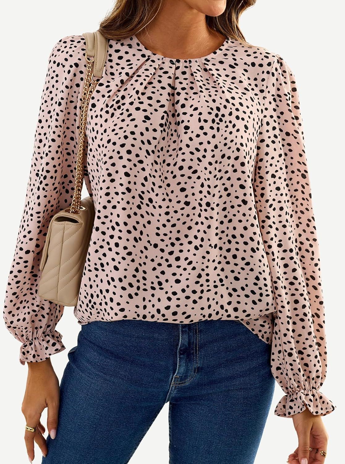 imageAvanova Women Leopard Blouses 34 Sleeve Length Tops Pleated Ruffle Long Sleeve Shirts Black XLarge
