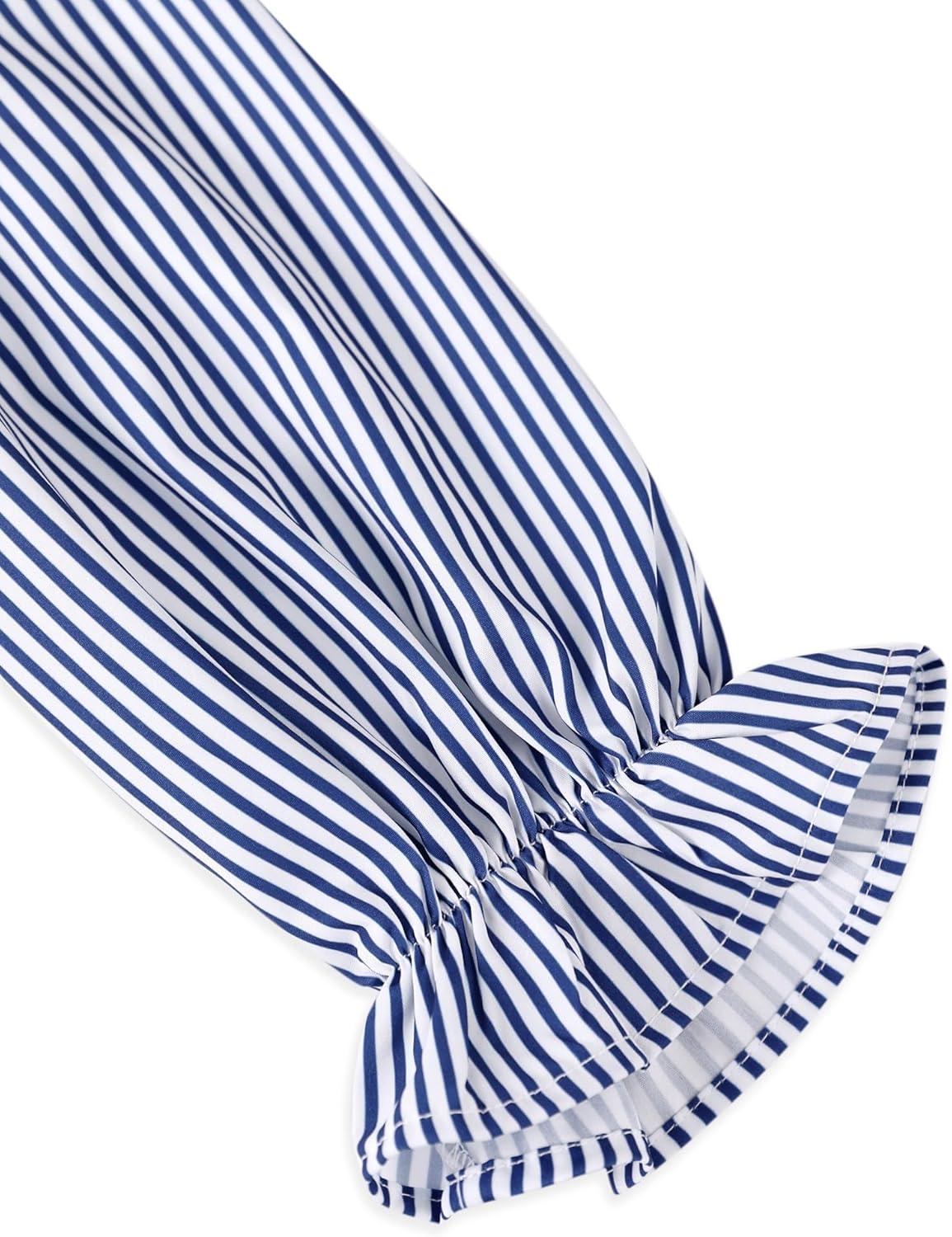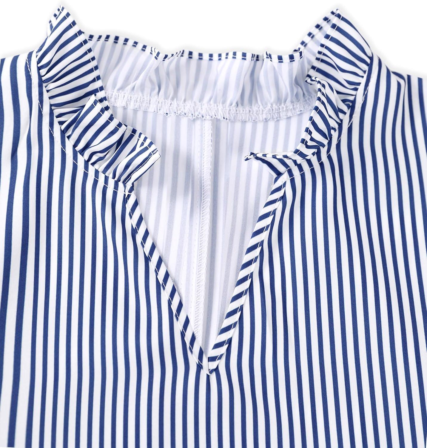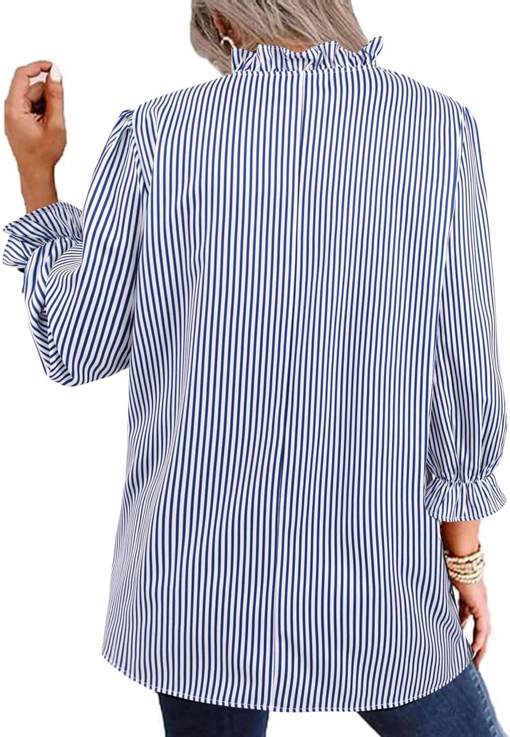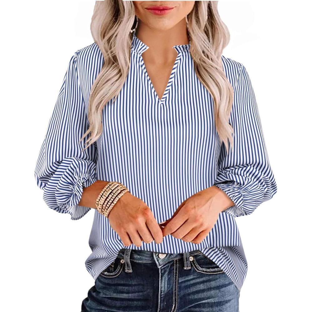 imageAvanova Women Leopard Print Ruffle V Neck Top 34 Long Sleeves Work Business Blouses ShirtBlue Striped