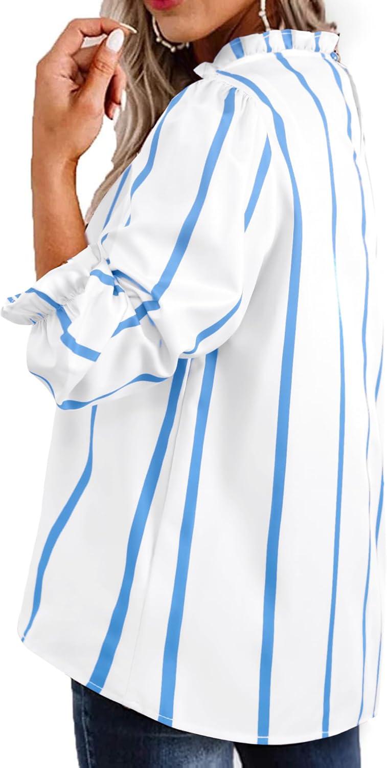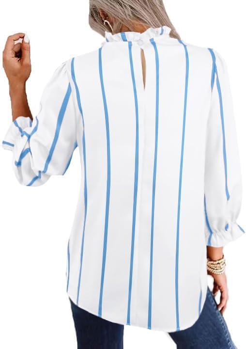 imageAvanova Women Polka Dot Long Sleeve Blouse Shirts Work Mock Neck Ruffle TopBlue White a