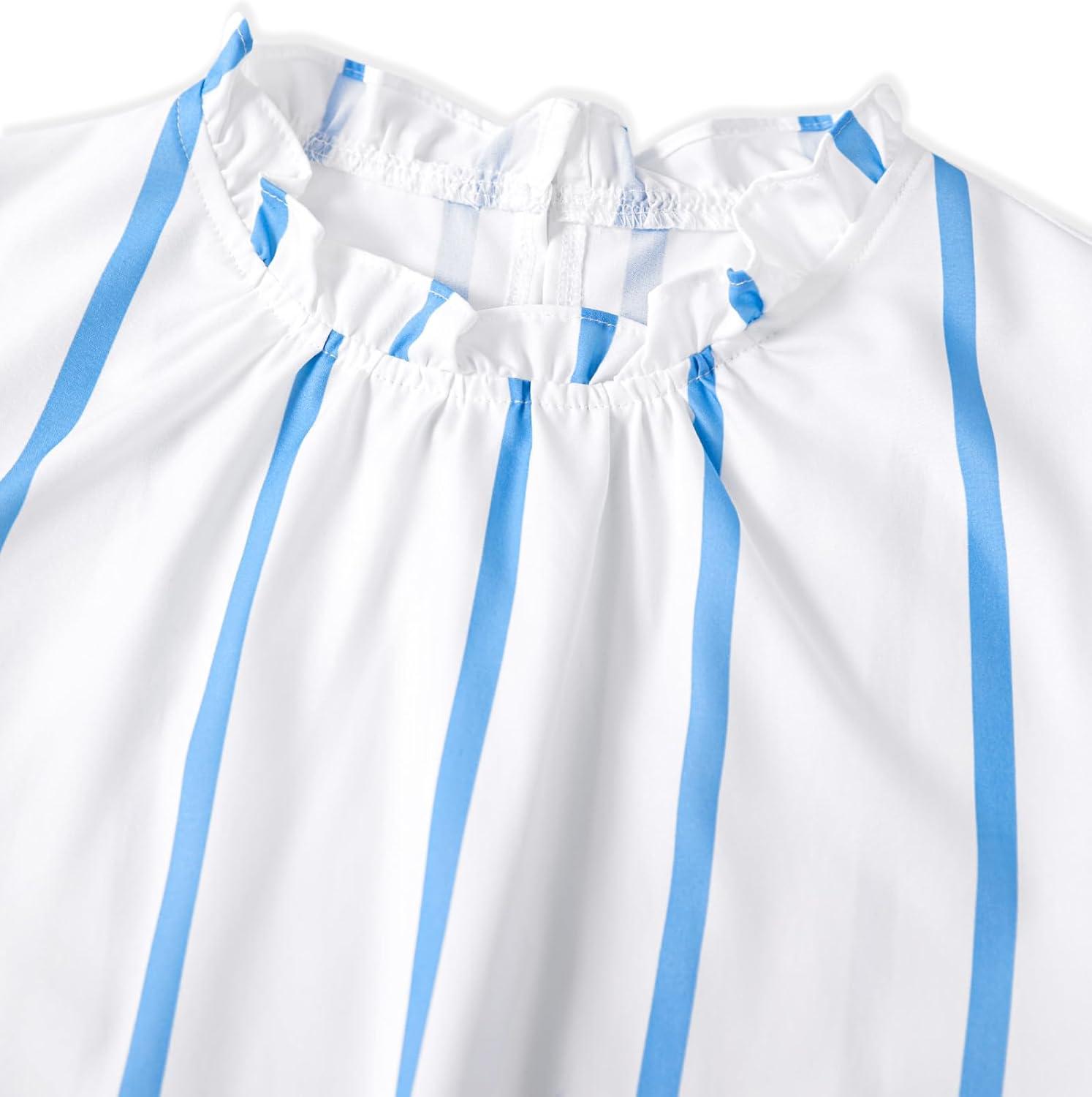 Avanova Women Polka Dot Long Sleeve Blouse Shirts Work Mock Neck Ruffle Top(Pink Stripe)