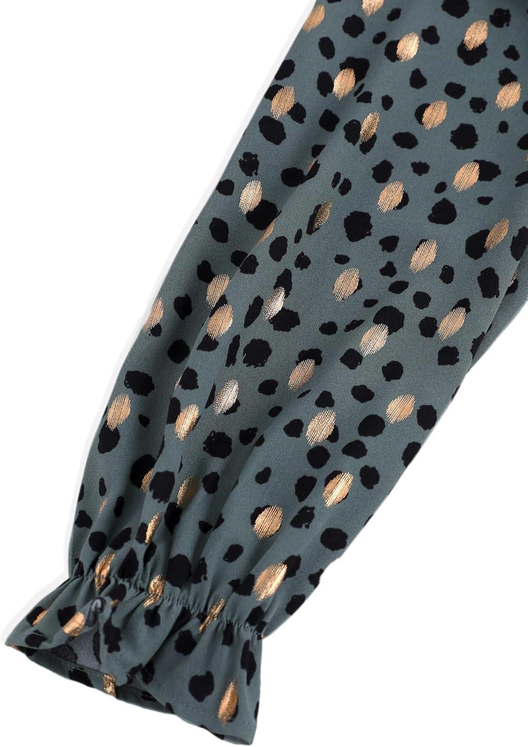 Avanova Women Polka Dot Long Sleeve Blouse Shirts Work Mock Neck Ruffle Top(Leopard Green Gold)