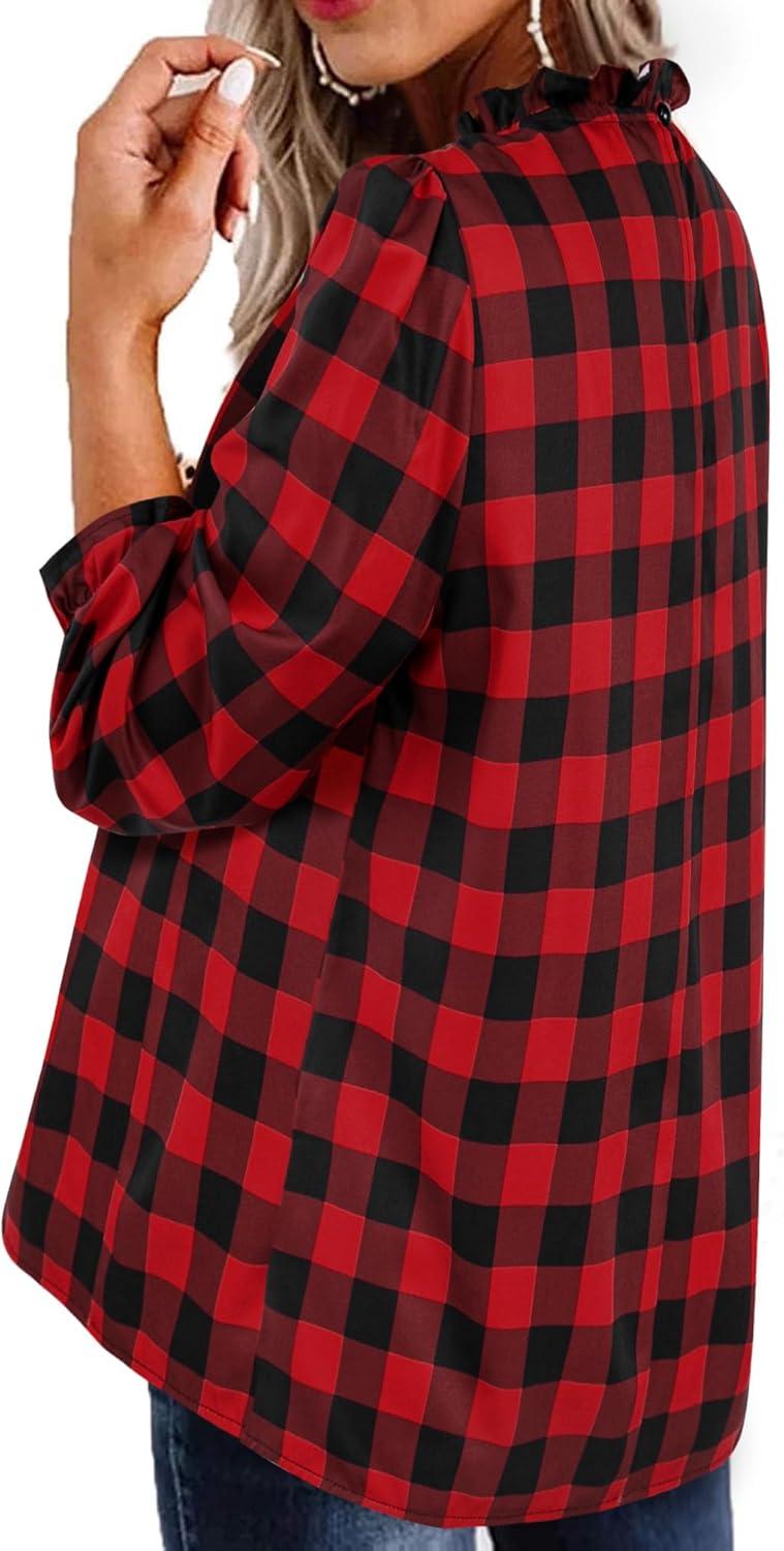 Avanova Women Polka Dot Long Sleeve Blouse Shirts Work Mock Neck Ruffle Top(Red Black)