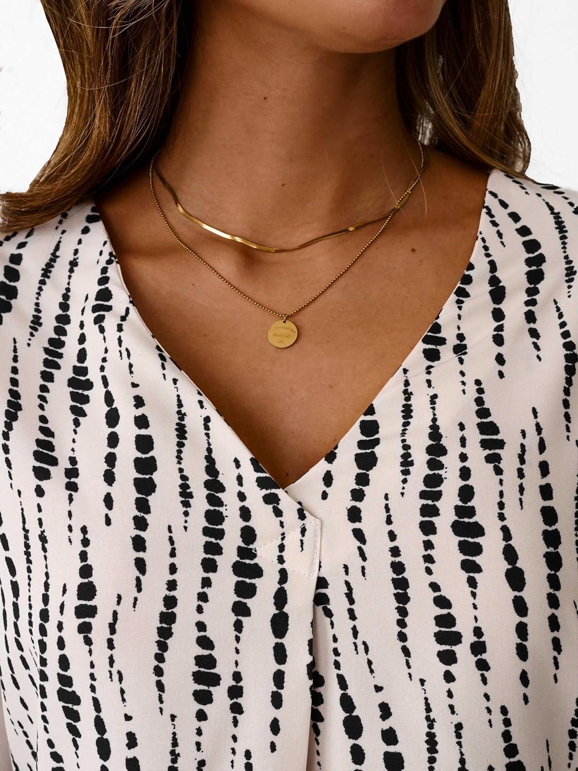 imageAvanova Women Boho Printed V Neck Tops Long Sleeve Shirts Work BlousesBlack Beige