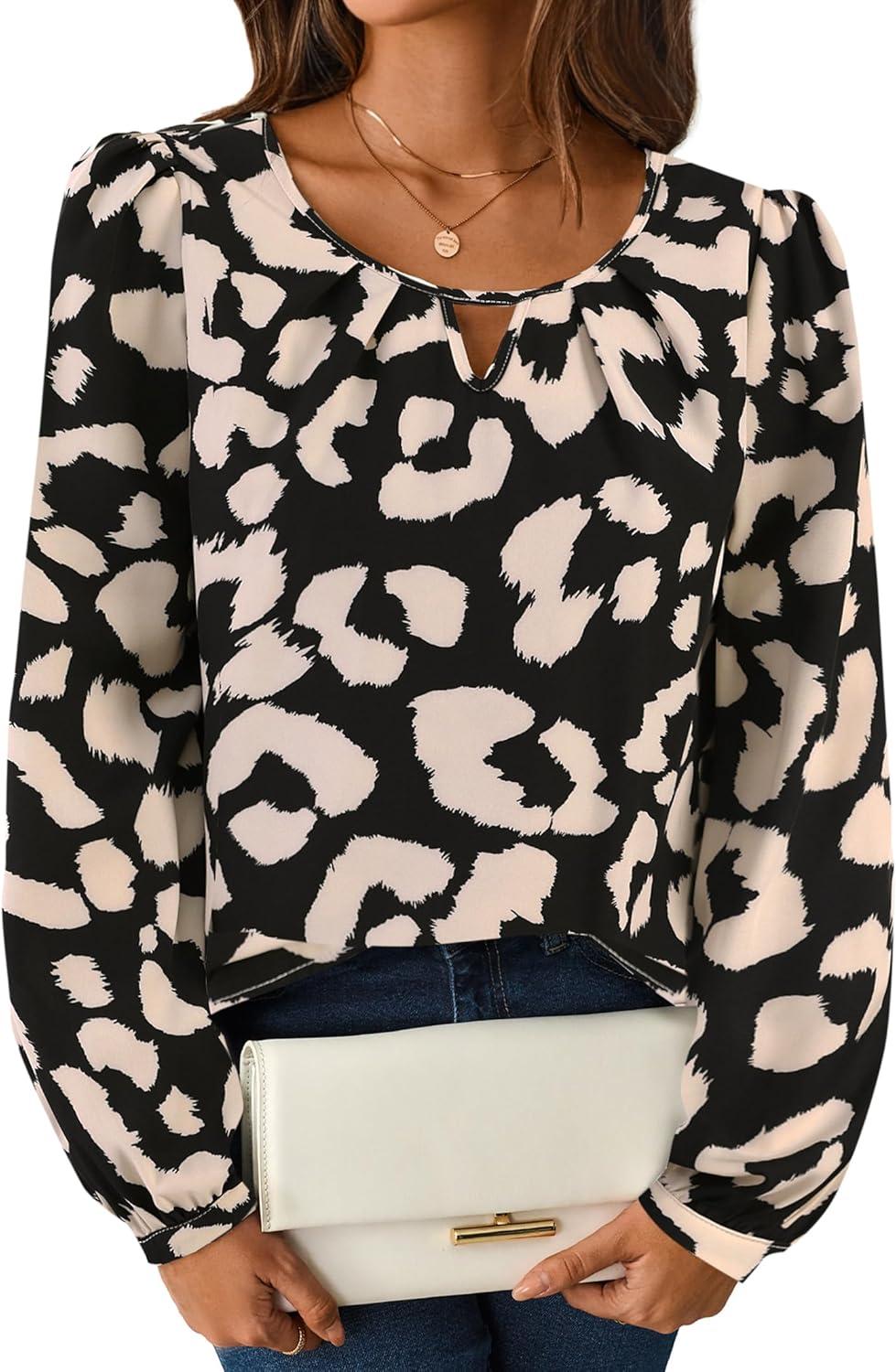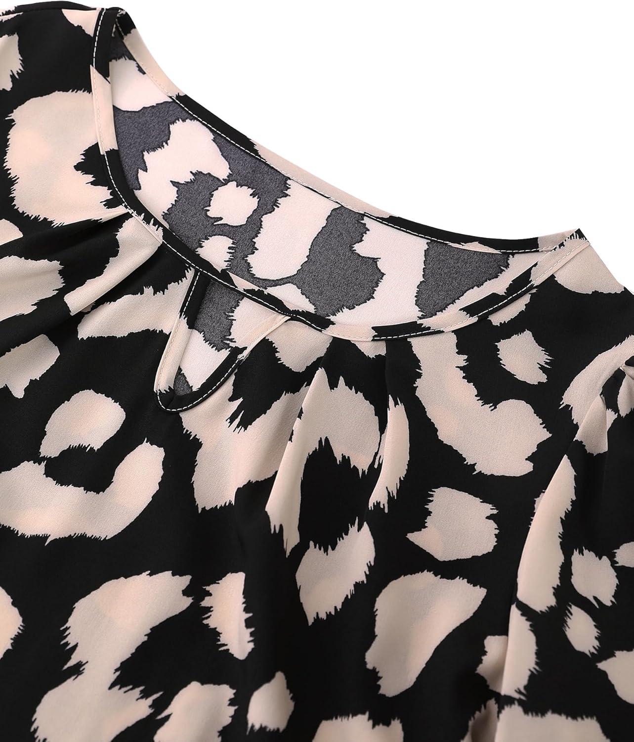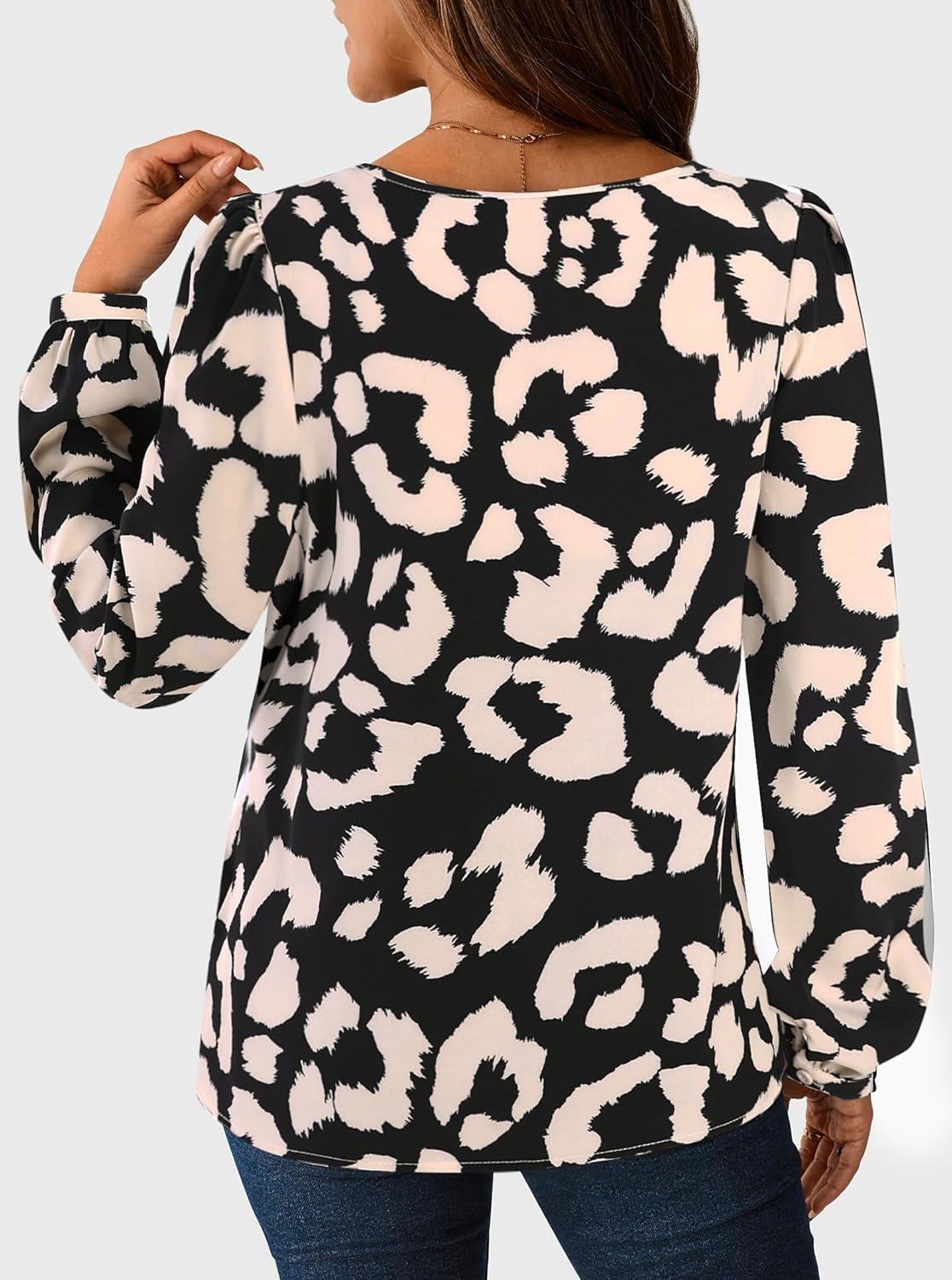 Avanova Women Striped Blouse Keyhole Tops Long Sleeves Work Business Casual Shirt(Black Leopard)