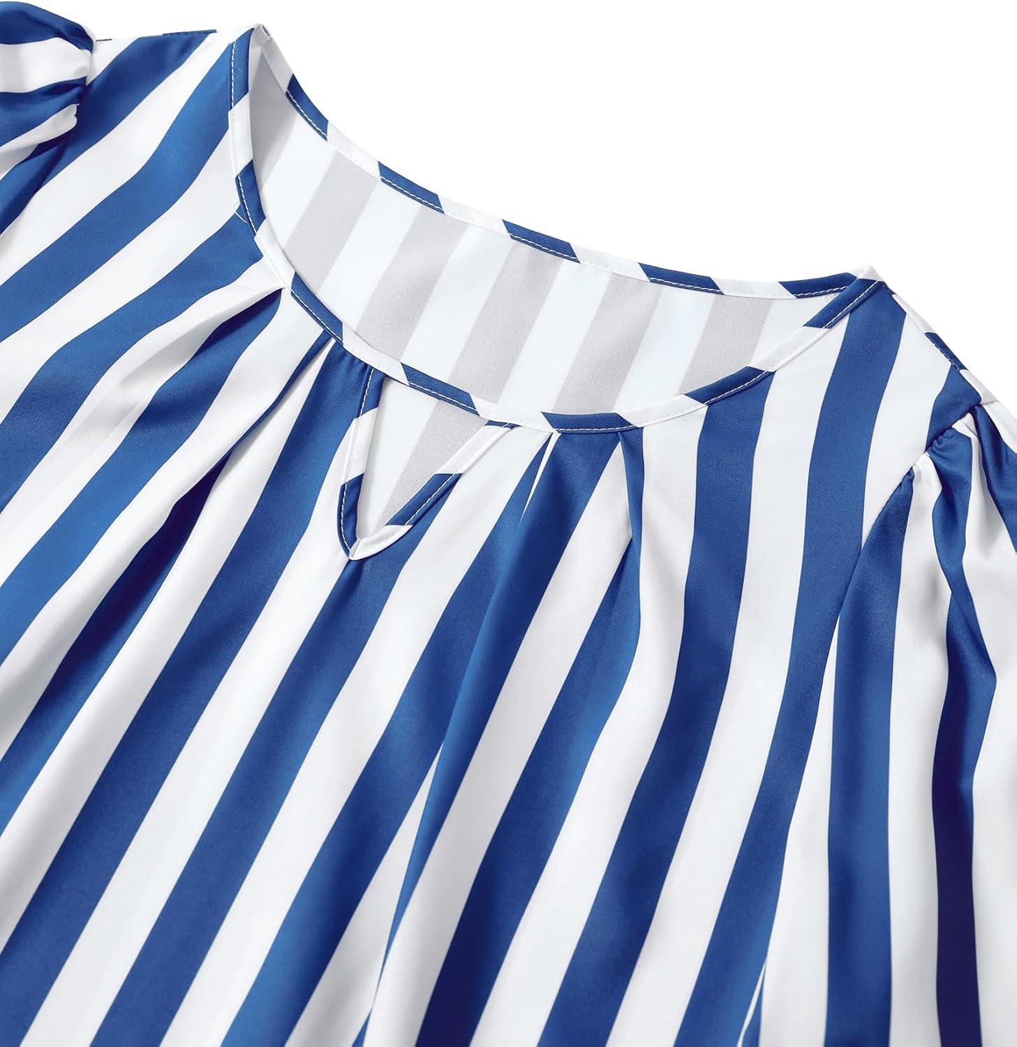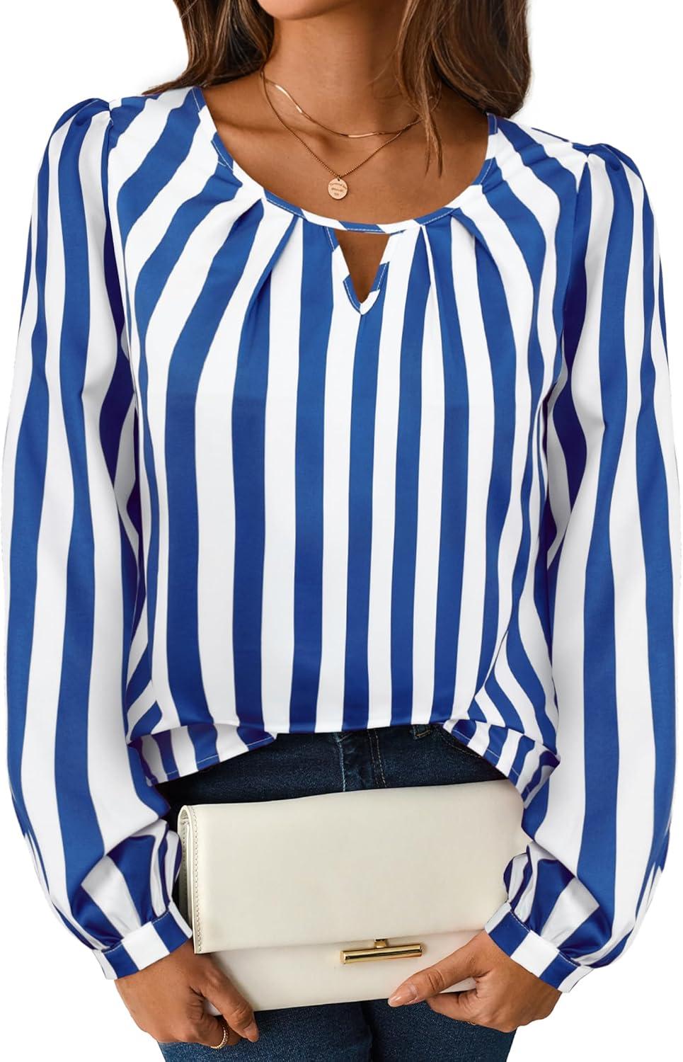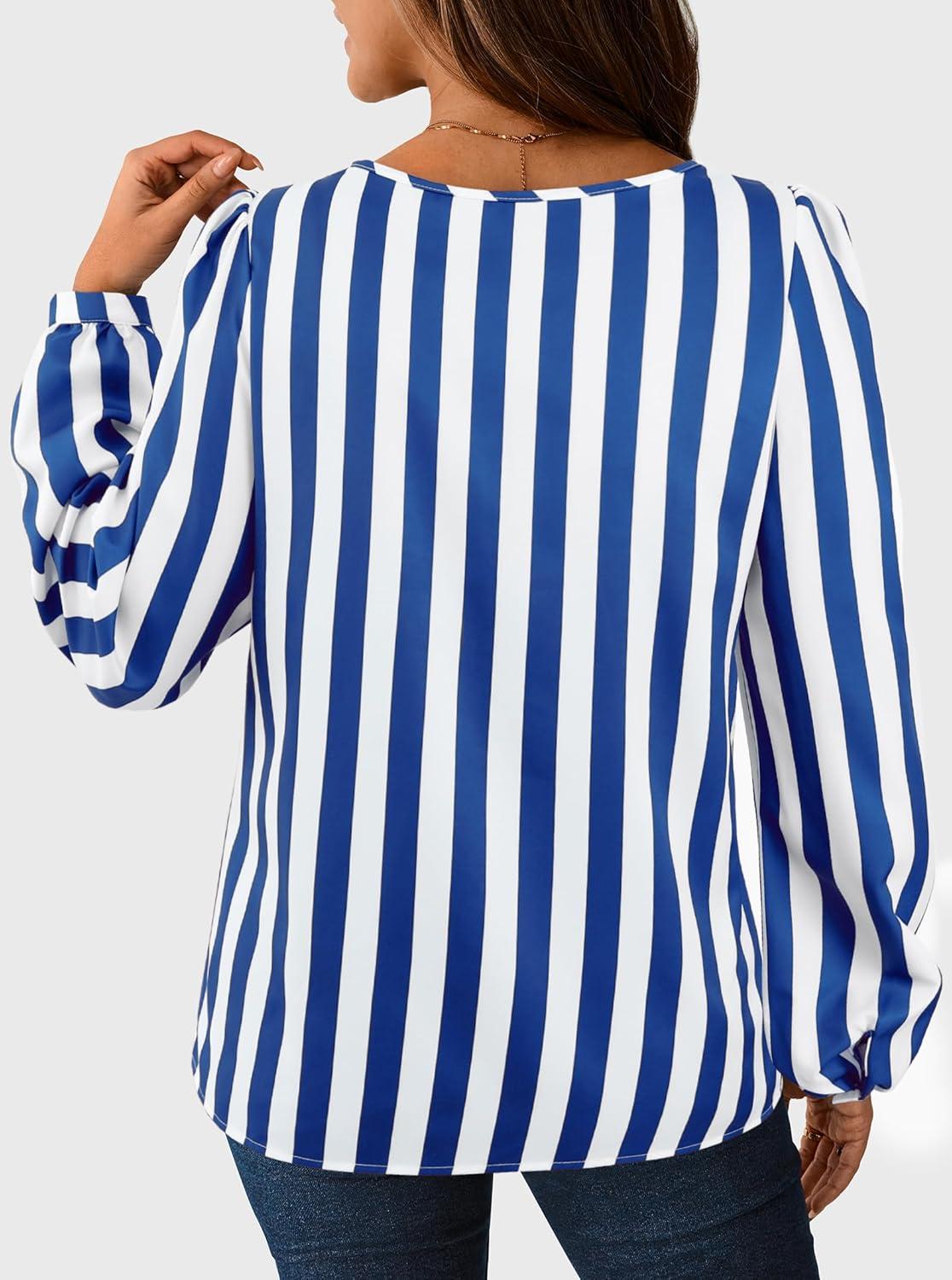 Avanova Women Striped Blouse Keyhole Tops Long Sleeves Work Business Casual Shirt(Blue)