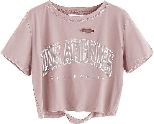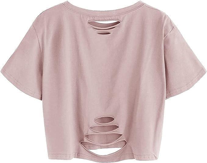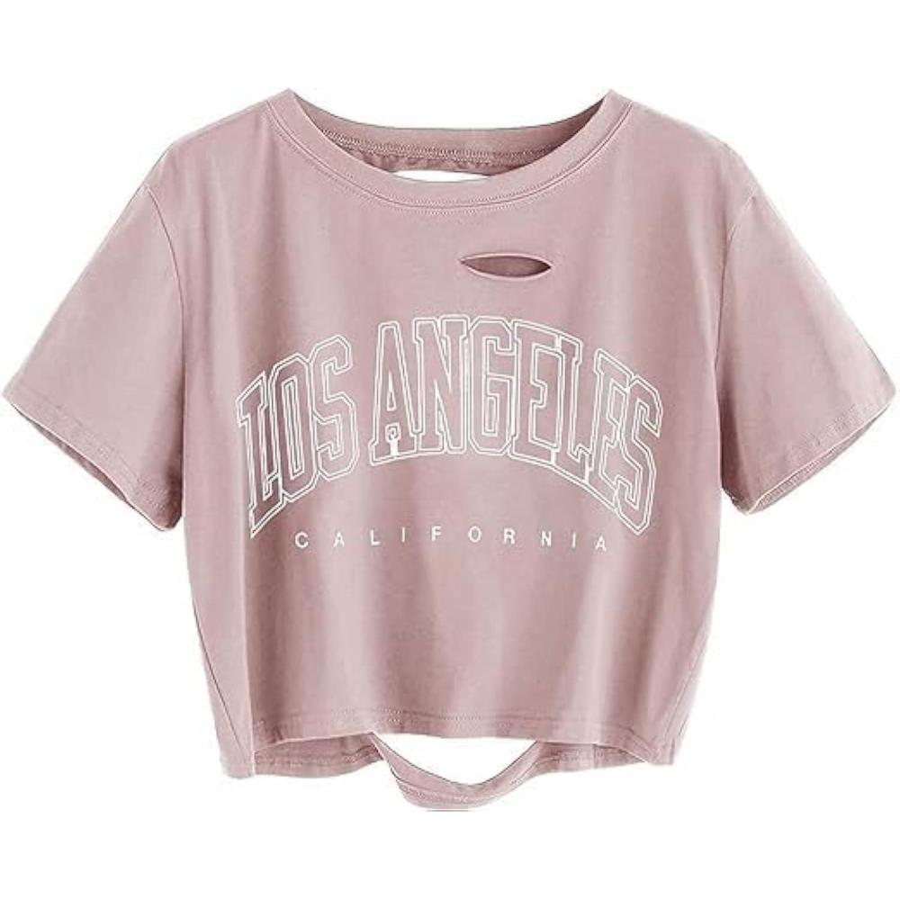 imageAvanova Women Tie Dye Graphic Ripped Tee Shirt Oversized Short Sleeve Distressed Crop TopLetter Pink