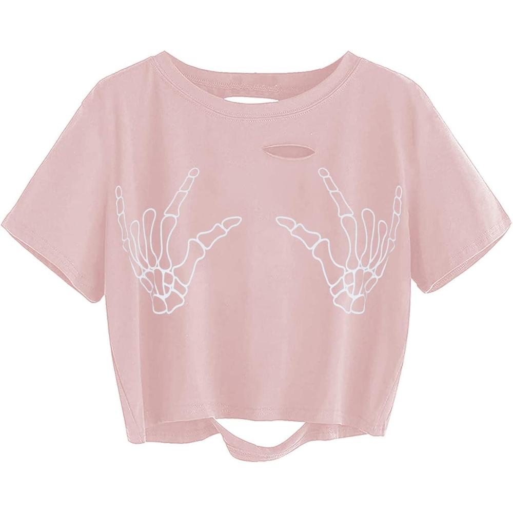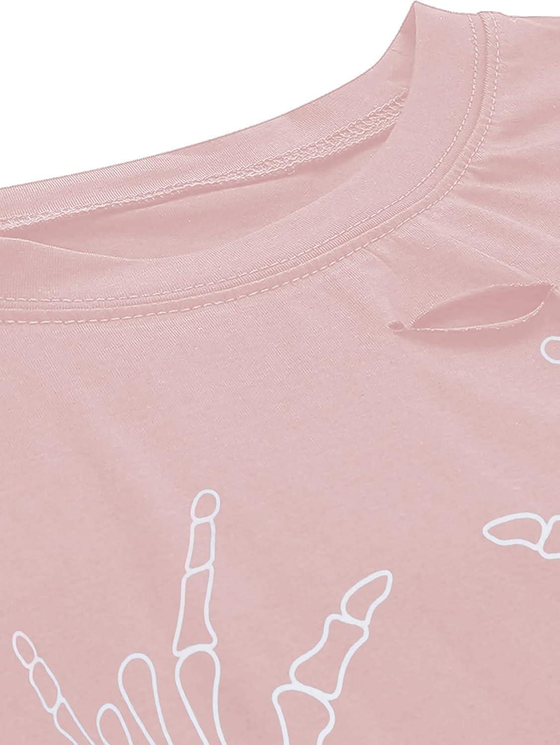 Avanova Women Tie Dye Graphic Ripped Tee Shirt Oversized Short Sleeve Distressed Crop Top(Skull Pink)