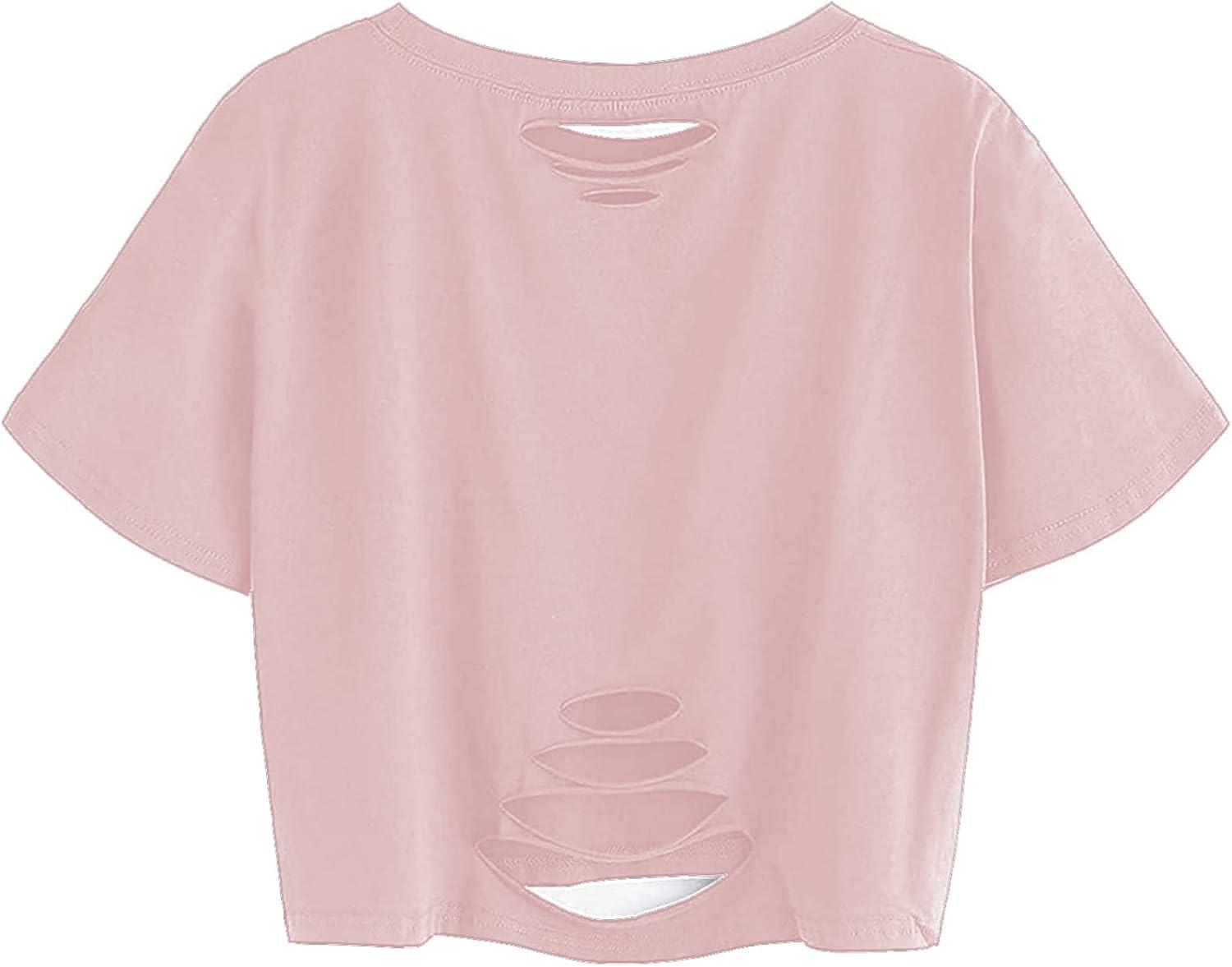 Avanova Women Tie Dye Graphic Ripped Tee Shirt Oversized Short Sleeve Distressed Crop Top(White Lx01)