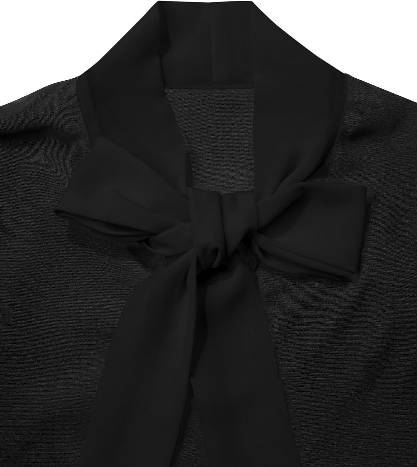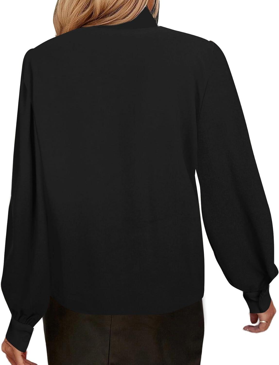 Avanova Women Tie Neck Bishop Long Sleeve Shirts Casual Work Blouses Tops(Black)