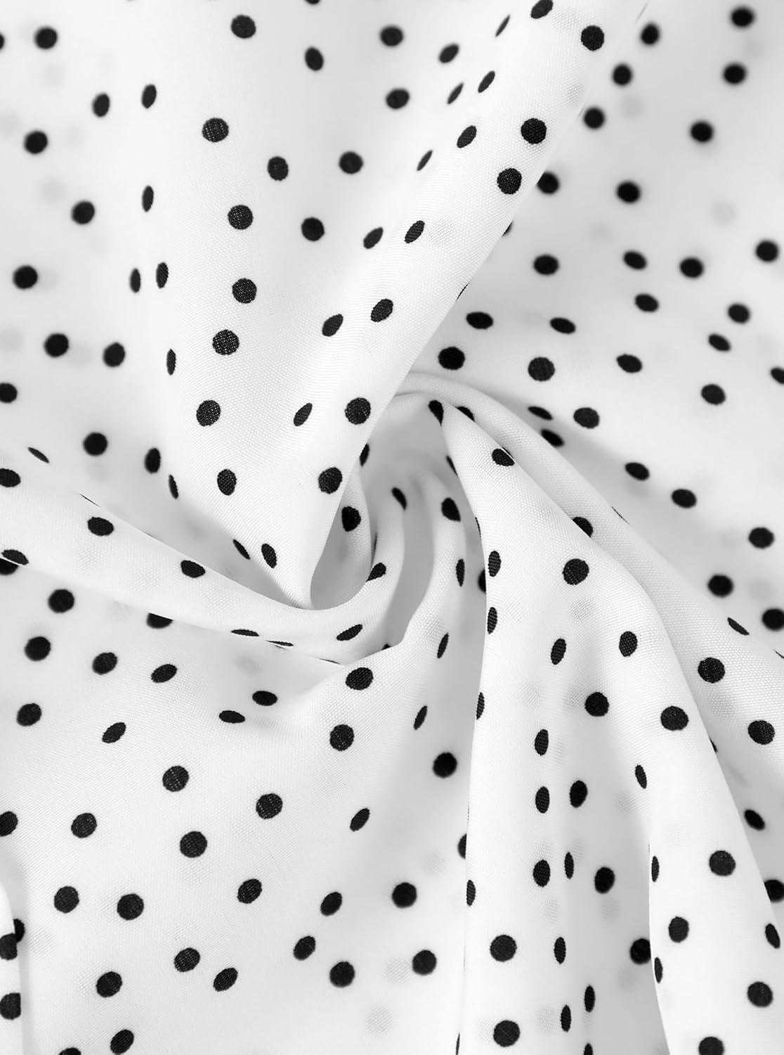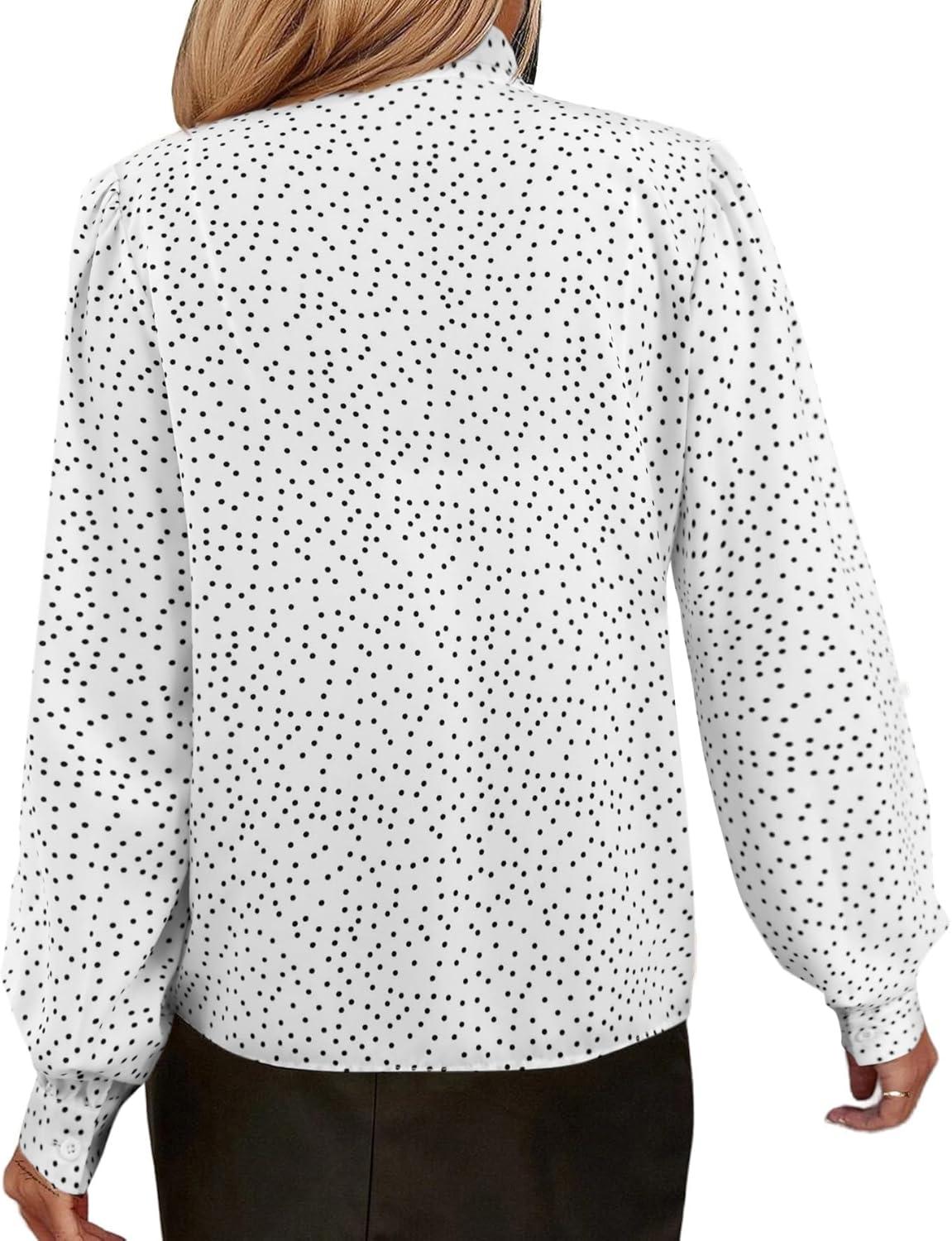 Avanova Women Tie Neck Bishop Long Sleeve Shirts Casual Work Blouses Tops(White Dots)