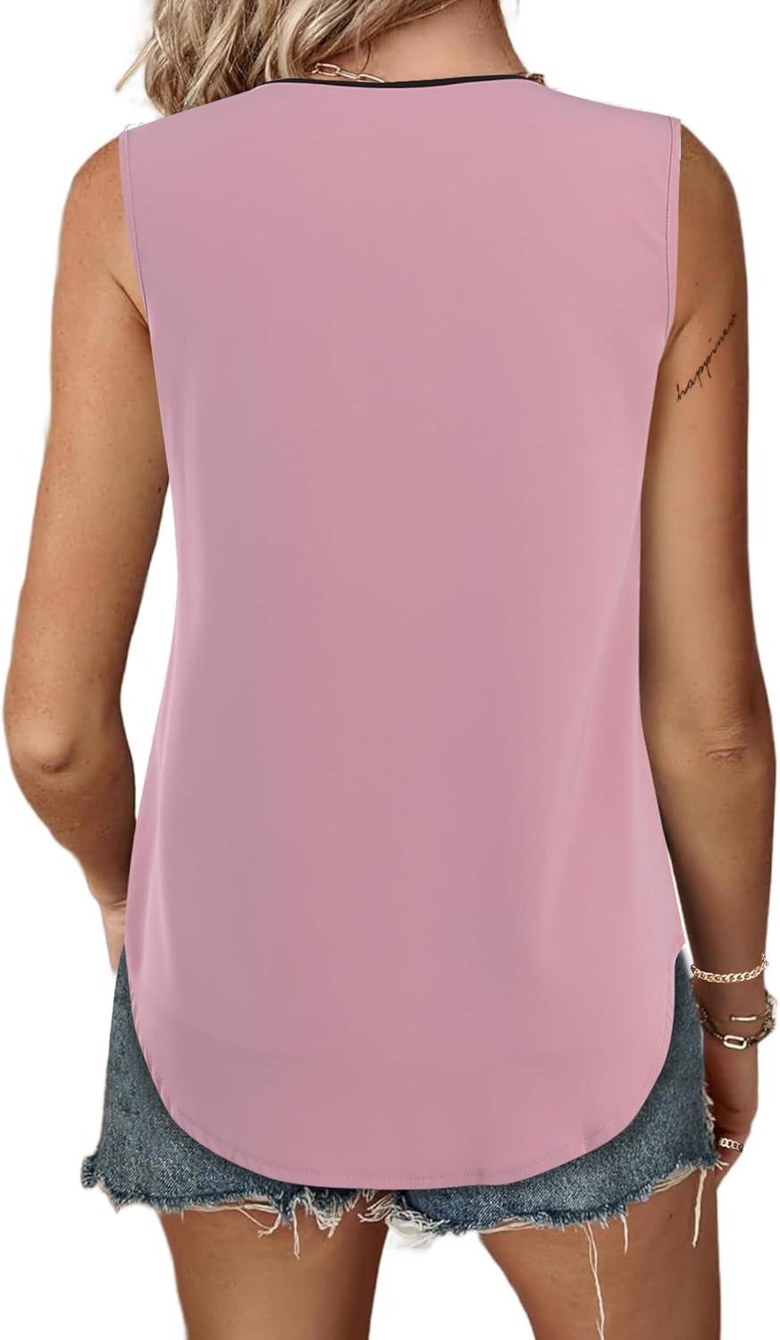 Avanova Women V Neck Tank Top Sleeveless Work Business Casual Blouse Shirt(Dusty Pink)