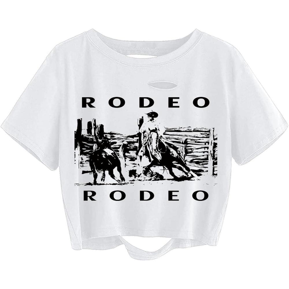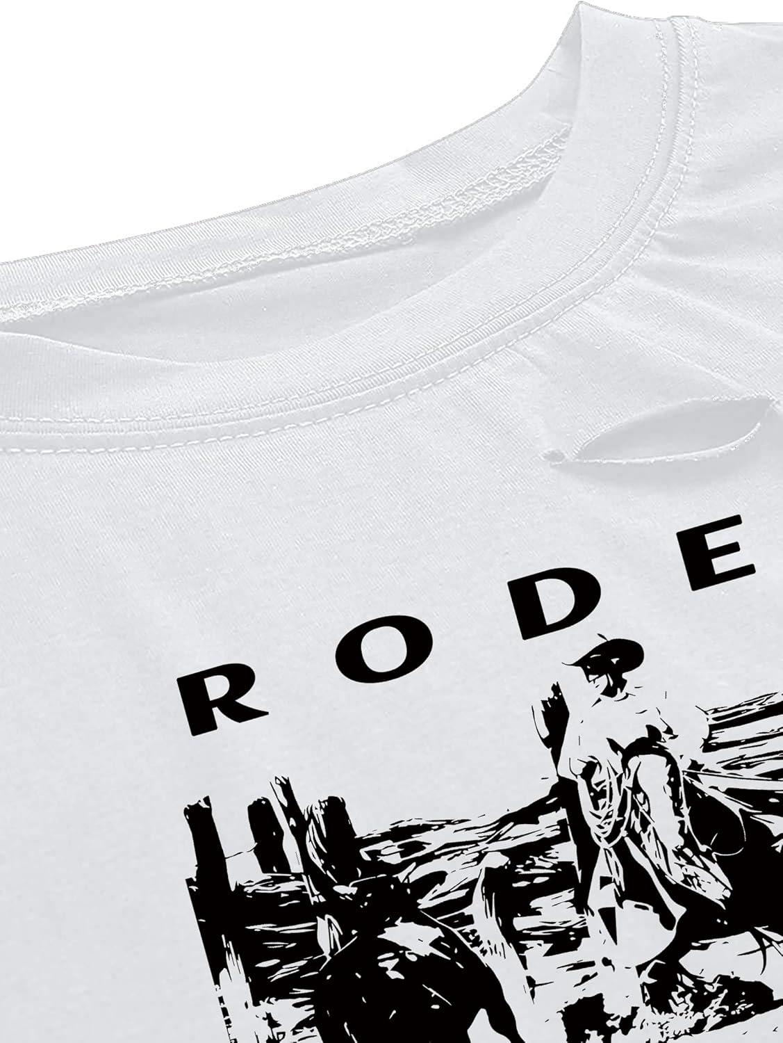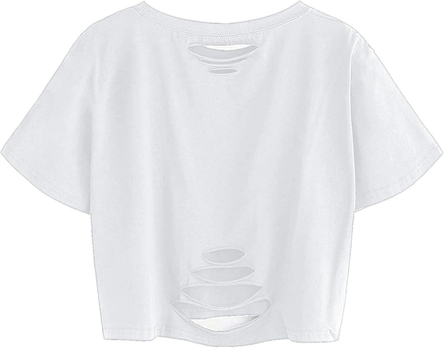 Avanova Women Skull Finger Graphic Distressed Tee Shirt Ripped Short Sleeve Crop Tops(Muti Kh)