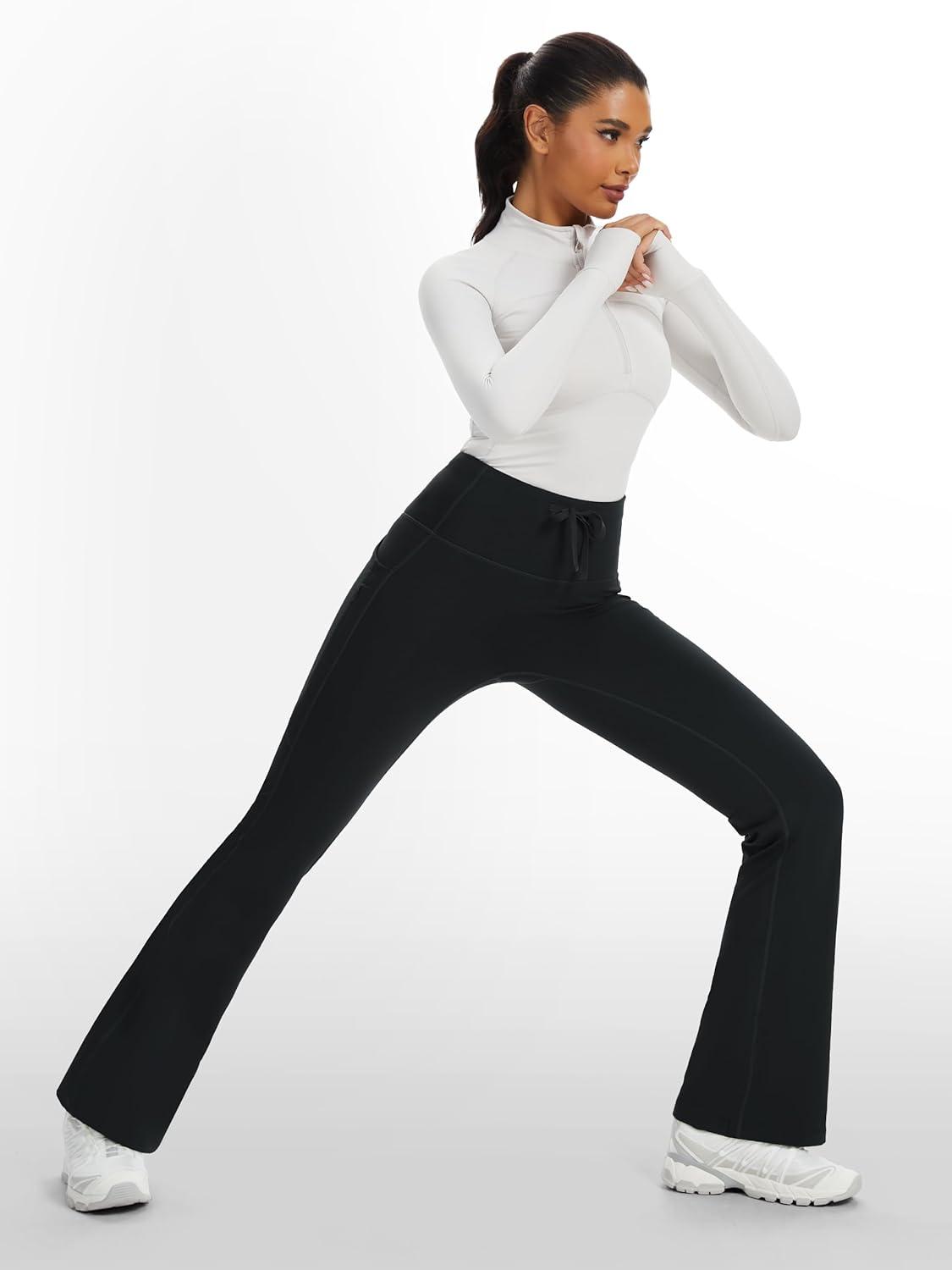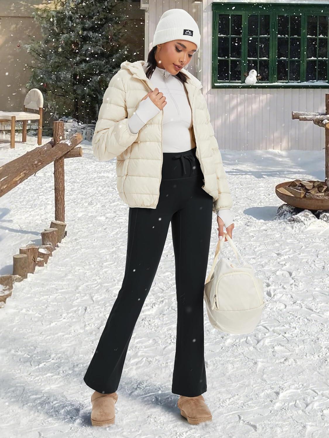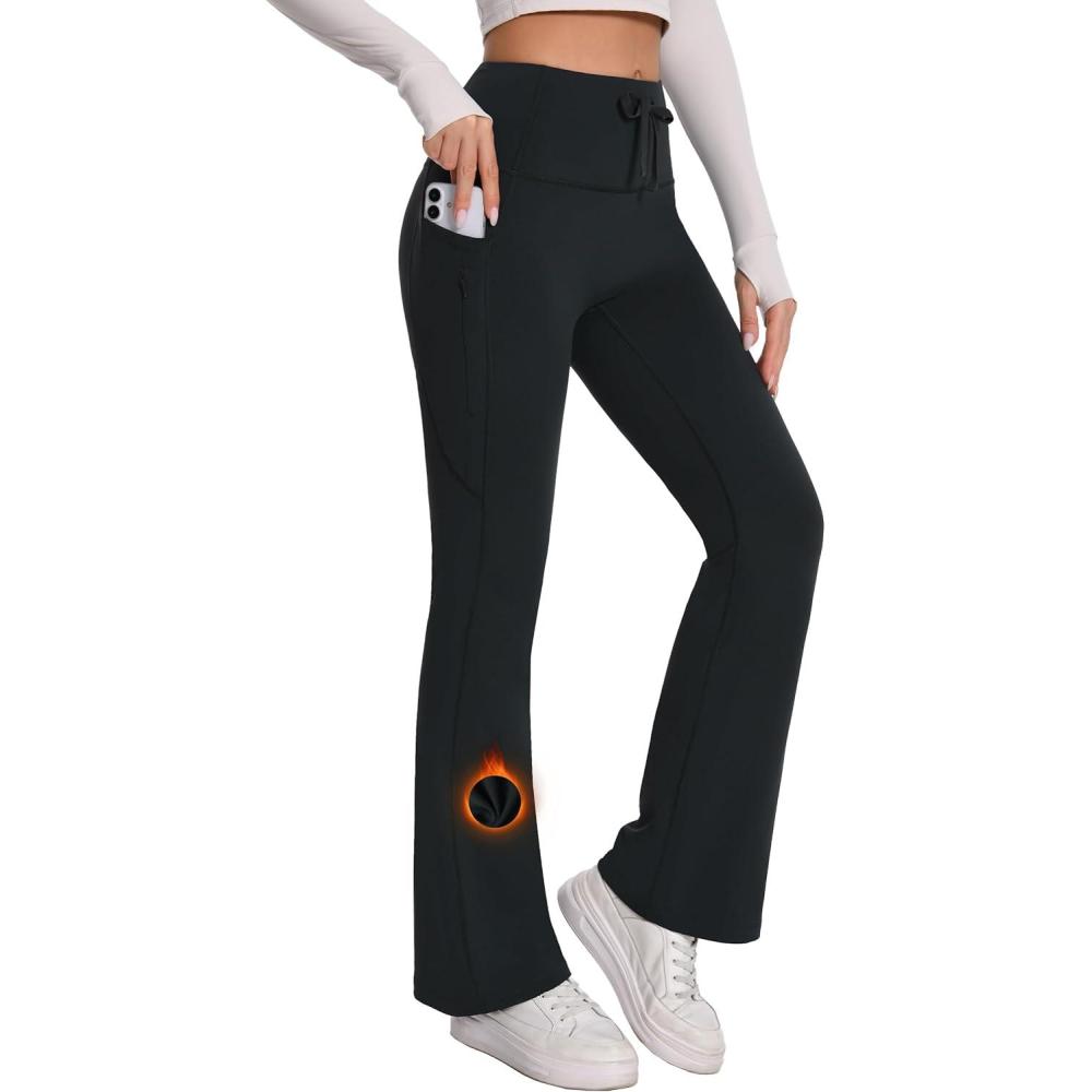 Our premium yoga pants feature fleece lining that retains body warmth without bulk. The bootcut design provides full mobility for skiing and hiking, while the water resistant fabric keeps you dry.